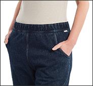 Abito intero dal look comodo e casual, con pantalone in jeans elasticizzato, per ricordare al malato la sua quotidianità.